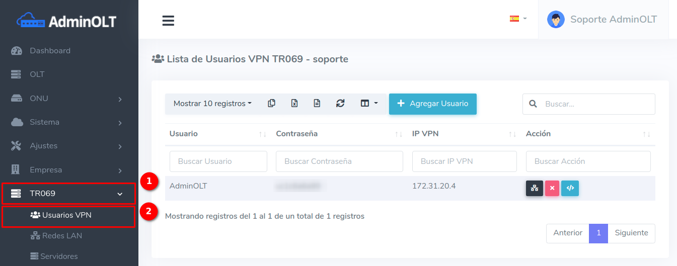 - Puerta de Enlace: IP VPN asignada por AdminOLT