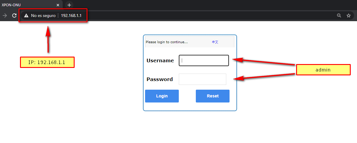 IP de la ONU: 192.168.1.1