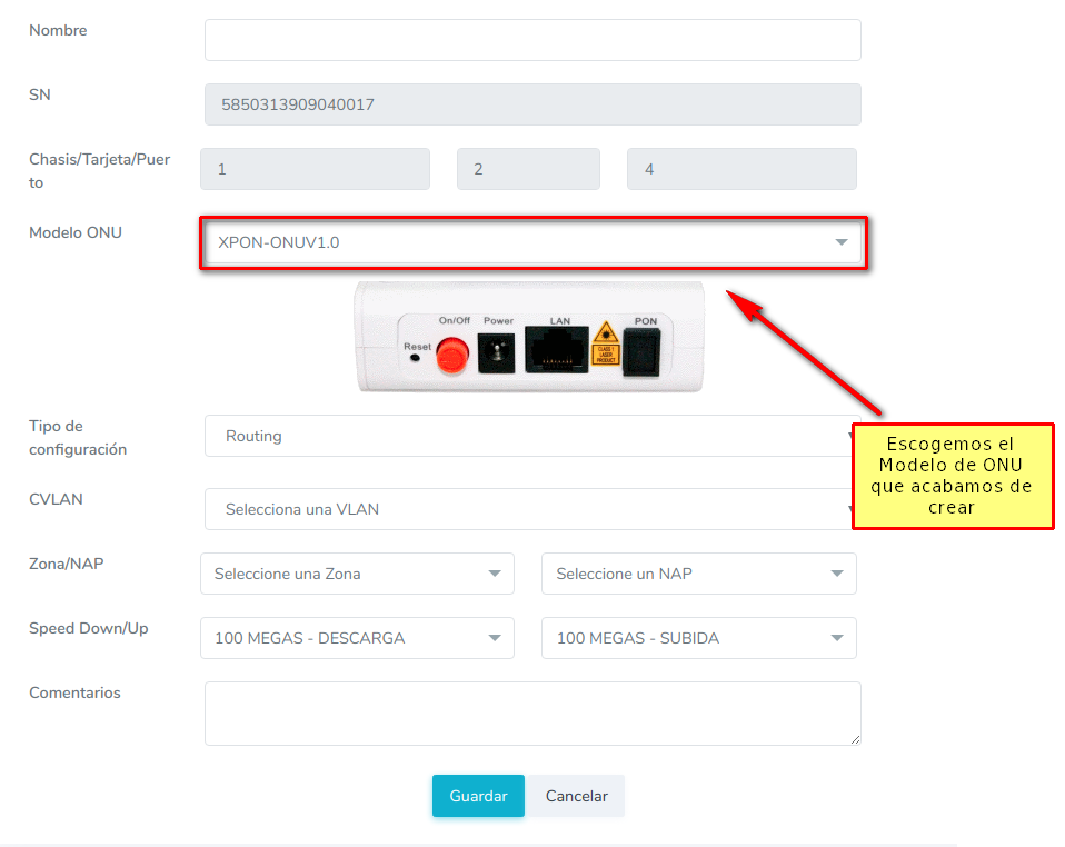 2 Autorizar ONU desde el sistema