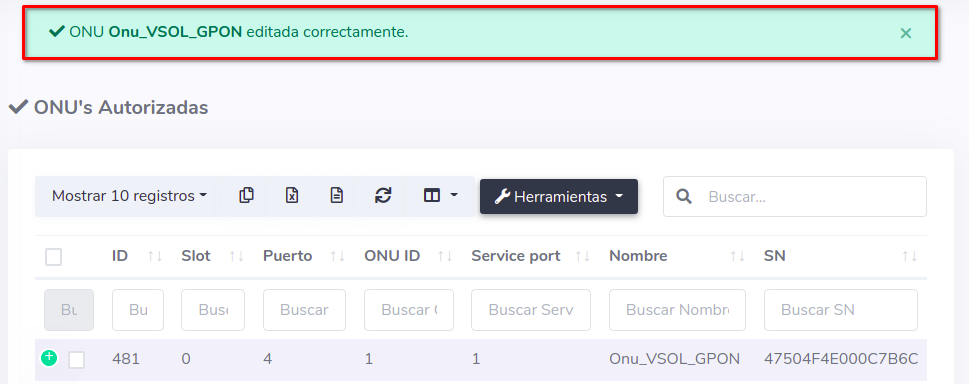 Para editar el Puerto de una ONU en la OLT existen 2 formas de hacerlo:
