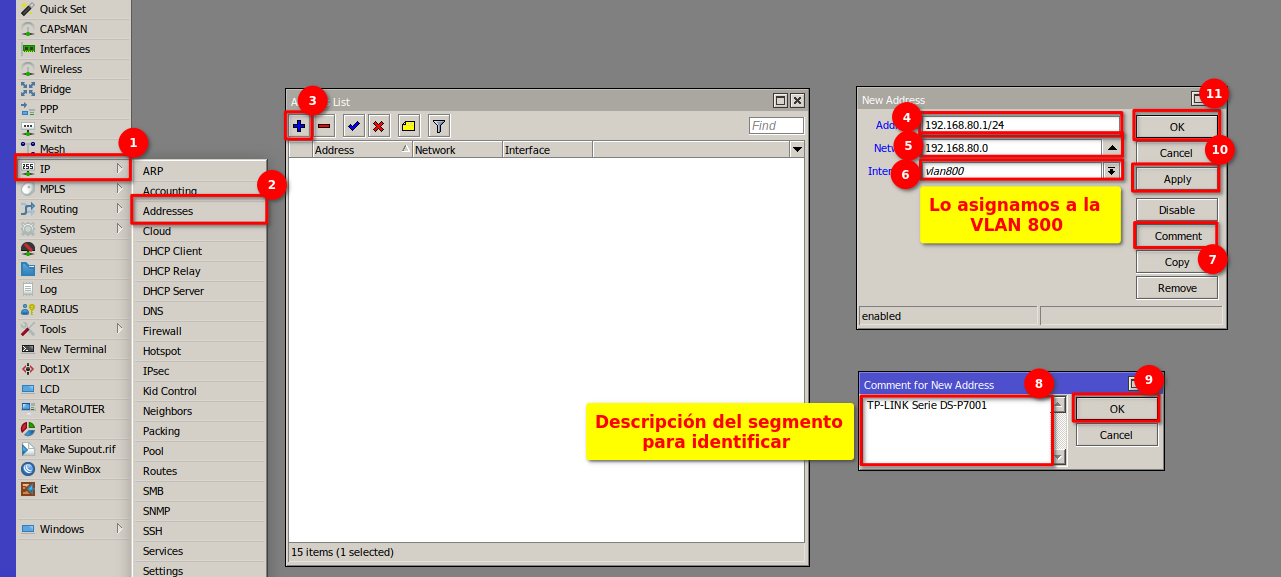 Para poder brindar el servicio debemos crear una VLAN para los clientes, para este ejemplo se creó anteriormente la VLAN 800, con el Segmento de Red 192.168.80.0/24