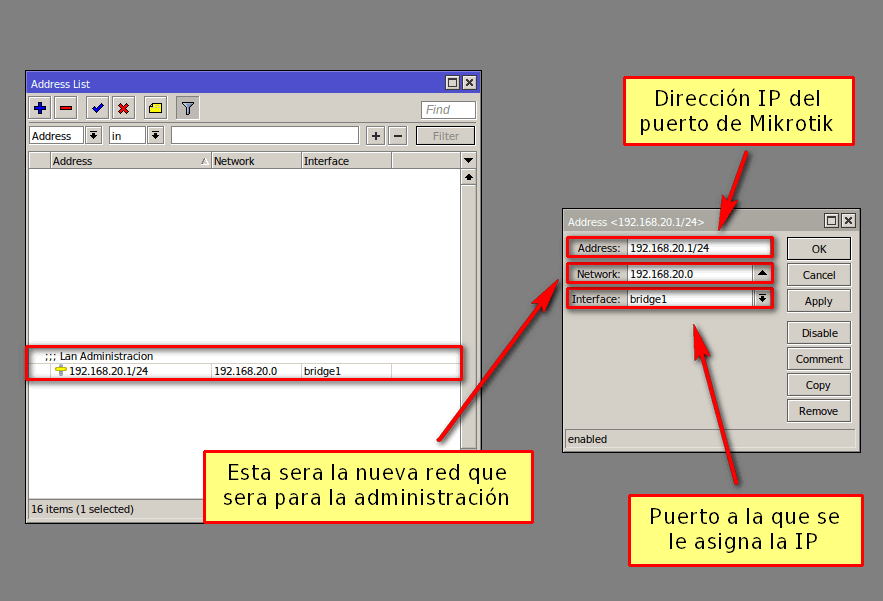 3Direccionamiento IP para red de administración. Este será la IP que utilizaremos para trabajar nuestra nueva red de administración.
