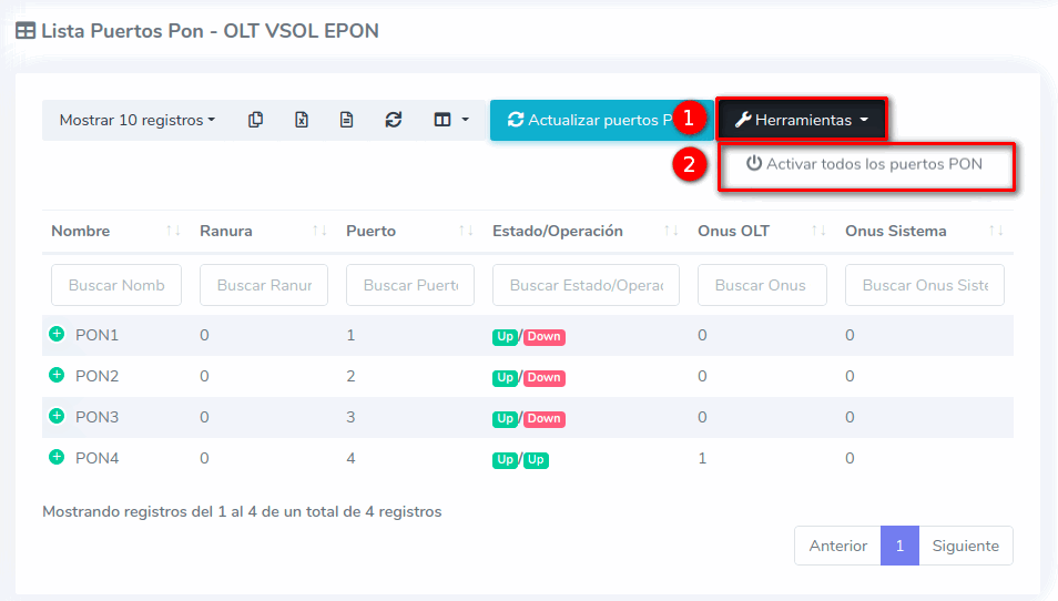 1 Ir a Lista de Puertos PON de nuestra OLT