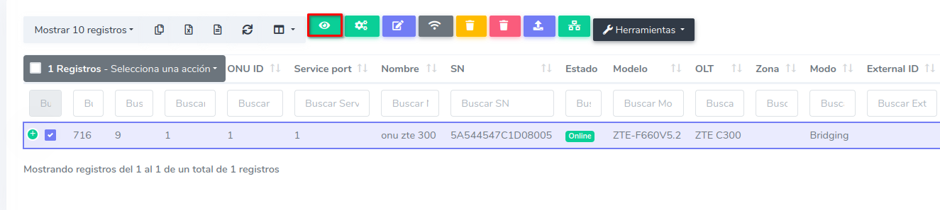 1Dirijase a la sección de ONU > Autorizadas y seleccione la ONU con la que desea trabajar.