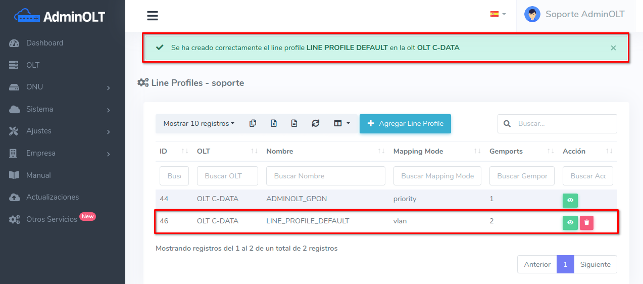 AdminOLT ha integrado una característica para crear configuraciones avanzadas de perfiles de línea, para que los usuarios puedan autorizar sus onus utilizando configuraciones personalizadas y no de la manera predeterminada realizada por AdminOLT.