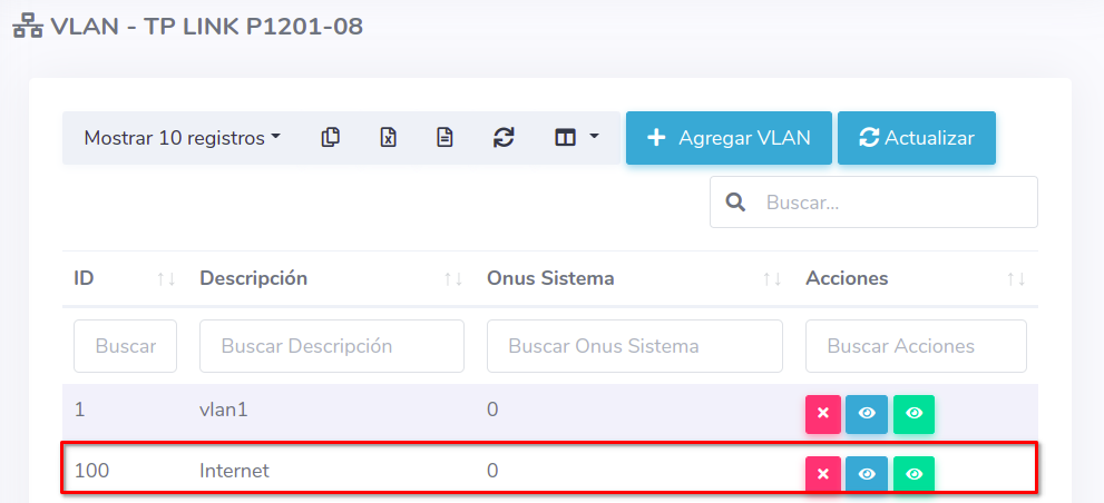 2 Después de agregar esta vlan en tu router, podremos agregarla en la OLT desde la Lista de OLT's seleccionando la OLT y la opción Lista de VLAN's.
