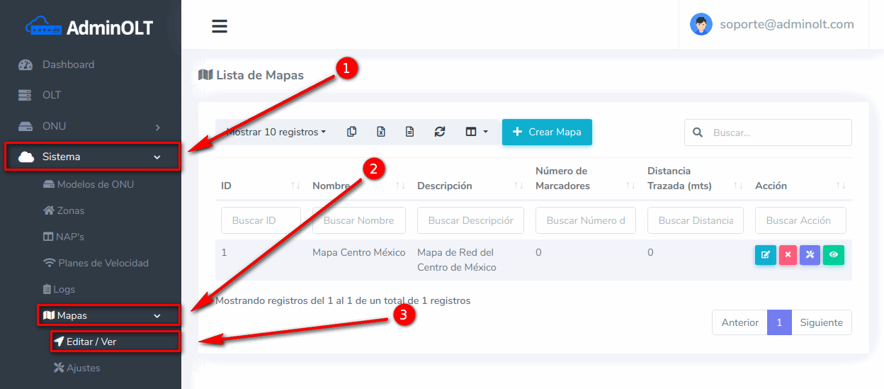 1 Ir a la sección Sistema > Mapas > Editar / Ver