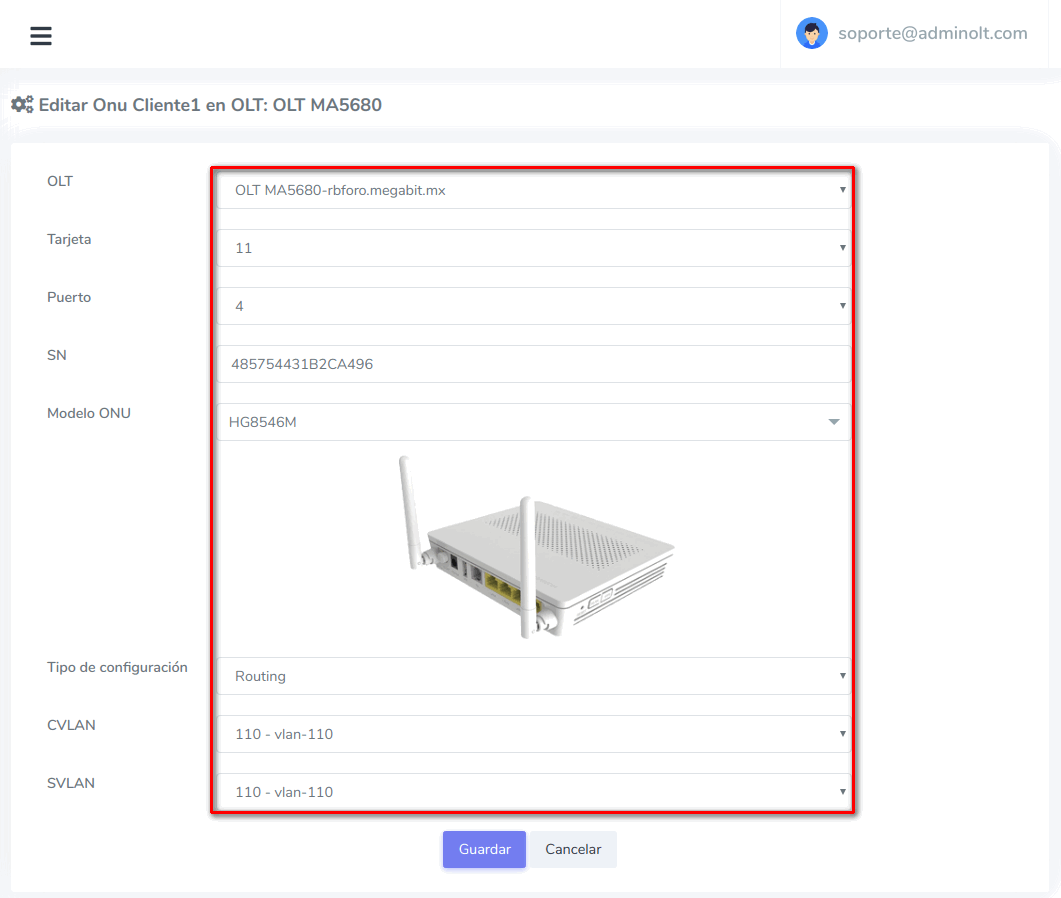 - Editar ONU en AdminOLT desde Lista de ONU's Autorizadas