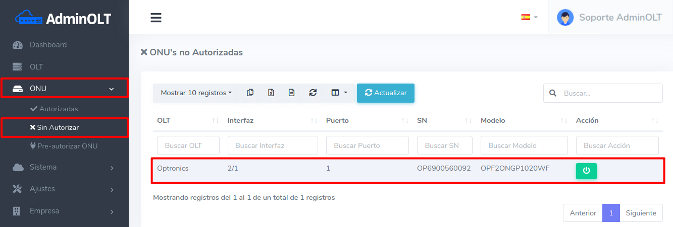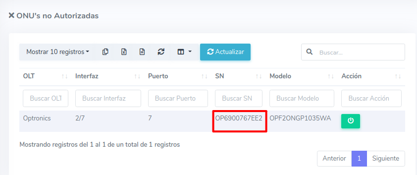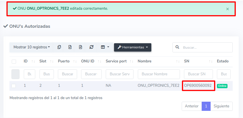 En AdminOLT podemos editar información de una ONU Autorizada en la OLT, supongamos que alguna de las ONUs que tenemos autorizadas en el sistema se estropea. Tomaremos como ejemplo esta situación para explicar el propósito de esta función. Así que en ese caso en AdminOLT al editar ONU por SN podemos tomar información de alguna ONU no Autorizada y usarla, sin perder la configuración inicial que teníamos.