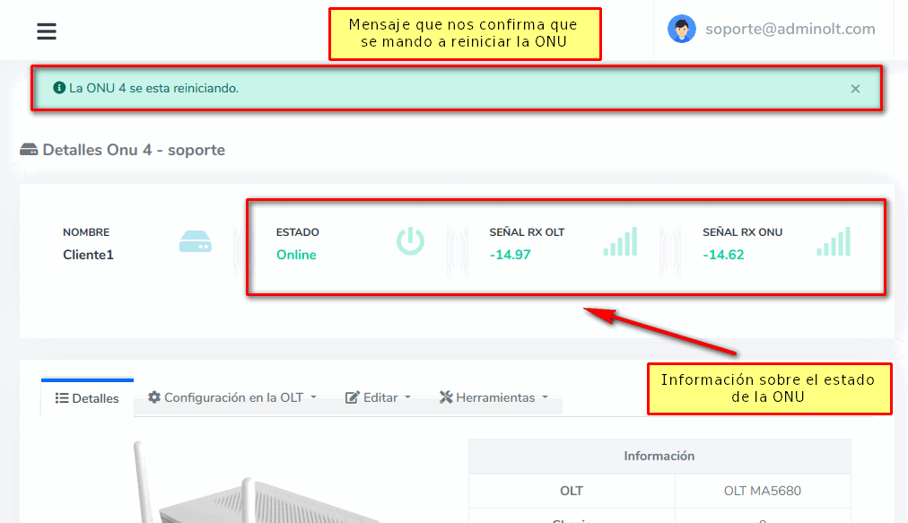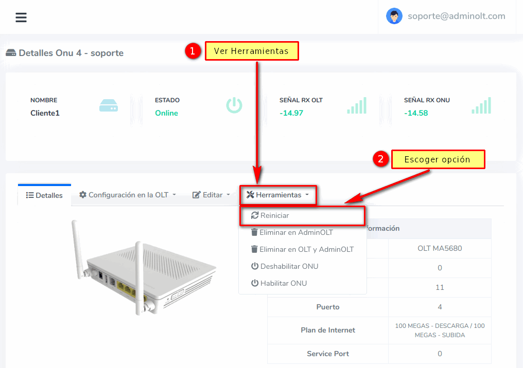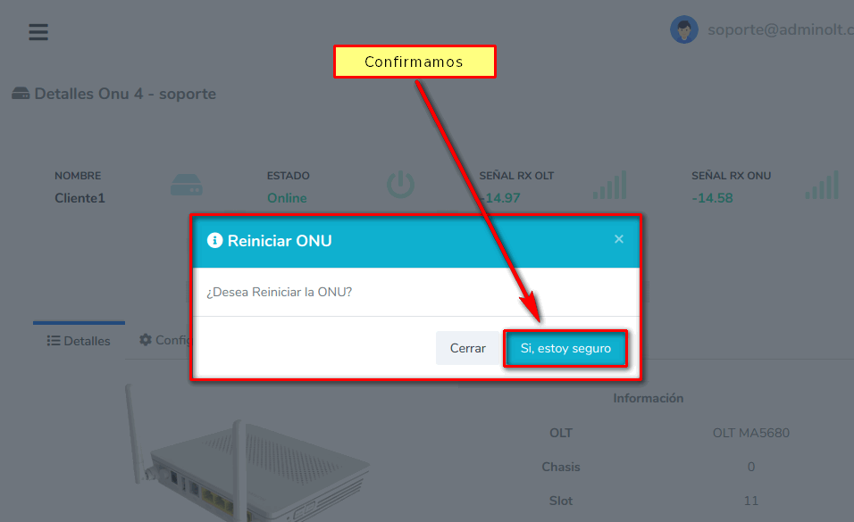 ¿Como reinicio una ONU Autorizada desde AdminOLT?