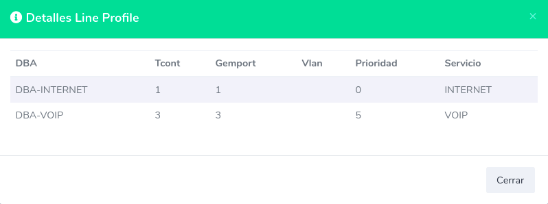 Es necesario que ingresemos a nuestra OLT y creamos los DBA que utilizaremos. Para este ejemplo, vamos a crear los siguientes DBA.
