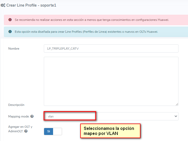 Para este caso vamos a seleccionar la opción de mapeo de VLAN de nuestro Line Profile