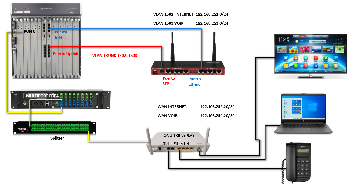 El Triple Play es la capacidad de dar servicio de internet, televisión y telefono a través de nuestra red de fibra óptica. Para ello es necesario que configuremos esos servicios desde AdminOLT