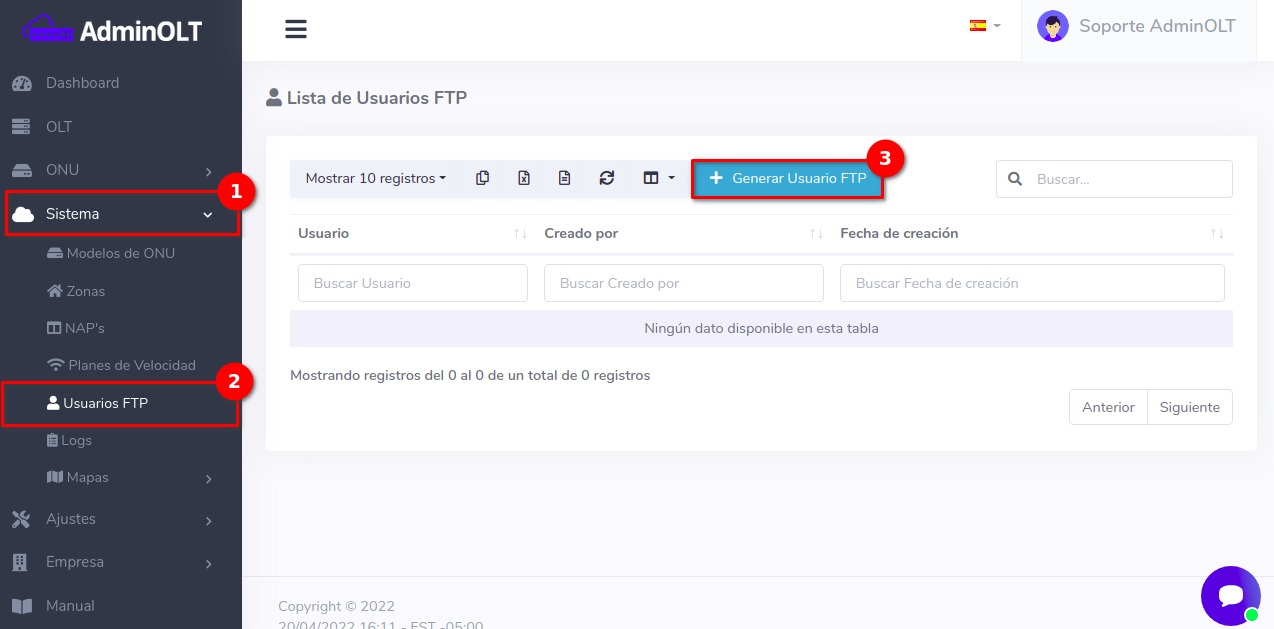 ¿Cómo creo un usuario FTP en el sistema AdminOLT?